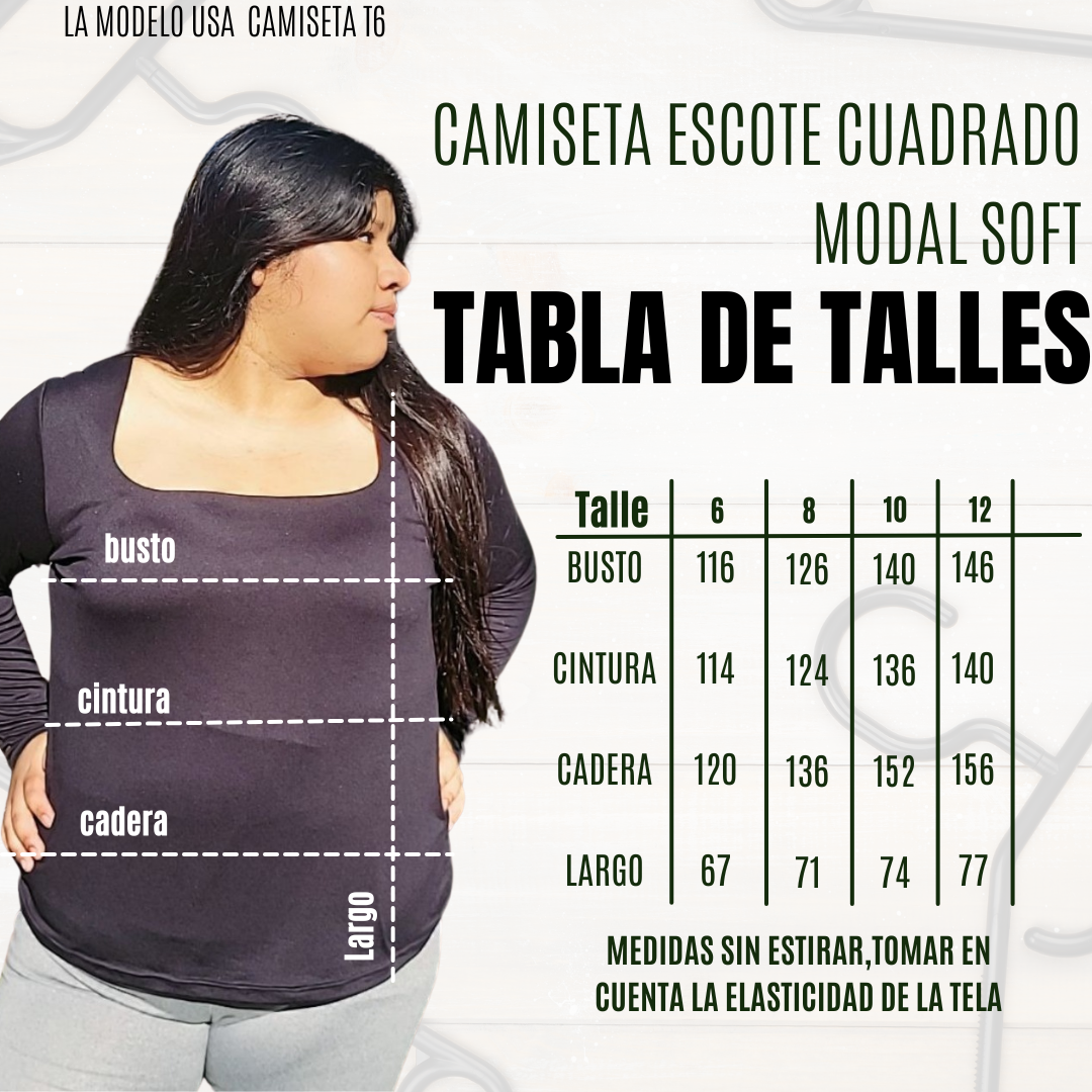 - Escote: Cuadrado