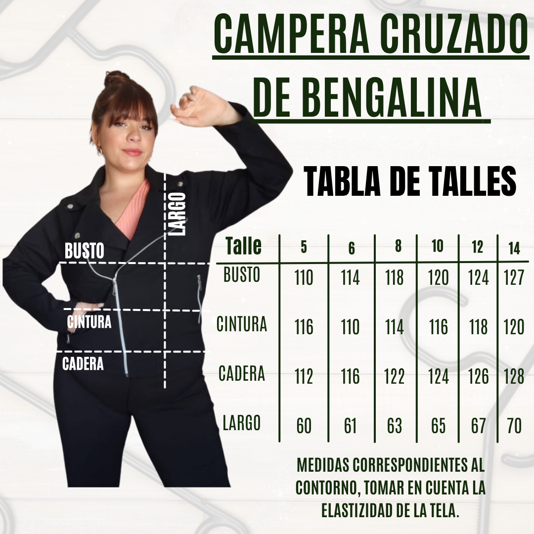 La Campera Cruzada de Bengalina Elastizada es una prenda de alta rotación y fuerte presencia visual, ideal para sumar a tu negocio como pieza protagonista de looks urbanos y modernos. Confeccionada en bengalina elastizada, ofrece una excelente combinación entre estructura y elasticidad, logrando un calce cómodo y adaptable a talles reales, muy valorado por las clientas.